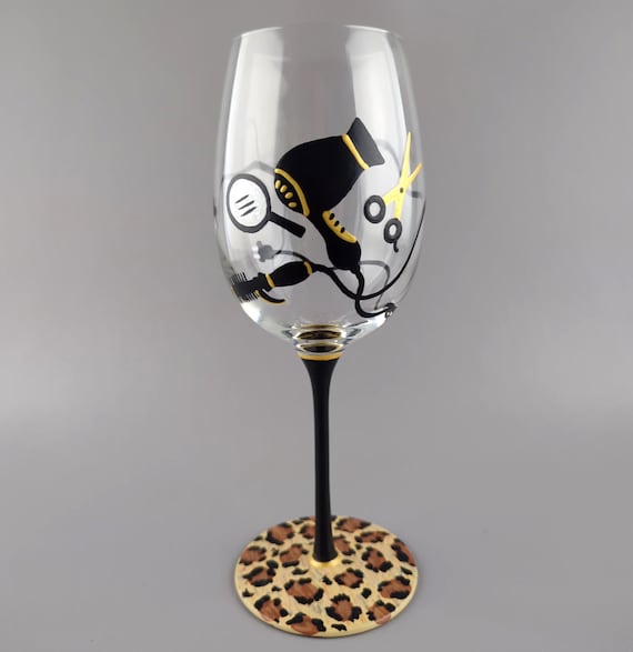 Hand-Painted Wine Glass - Leopard Print, Hair Stylist Theme