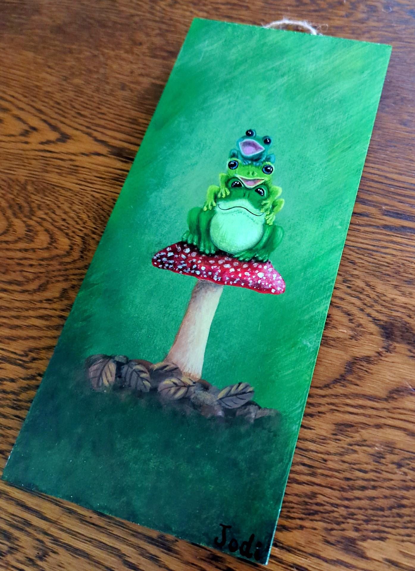 Original hand-painted frog artwork on wood — ready to hang.