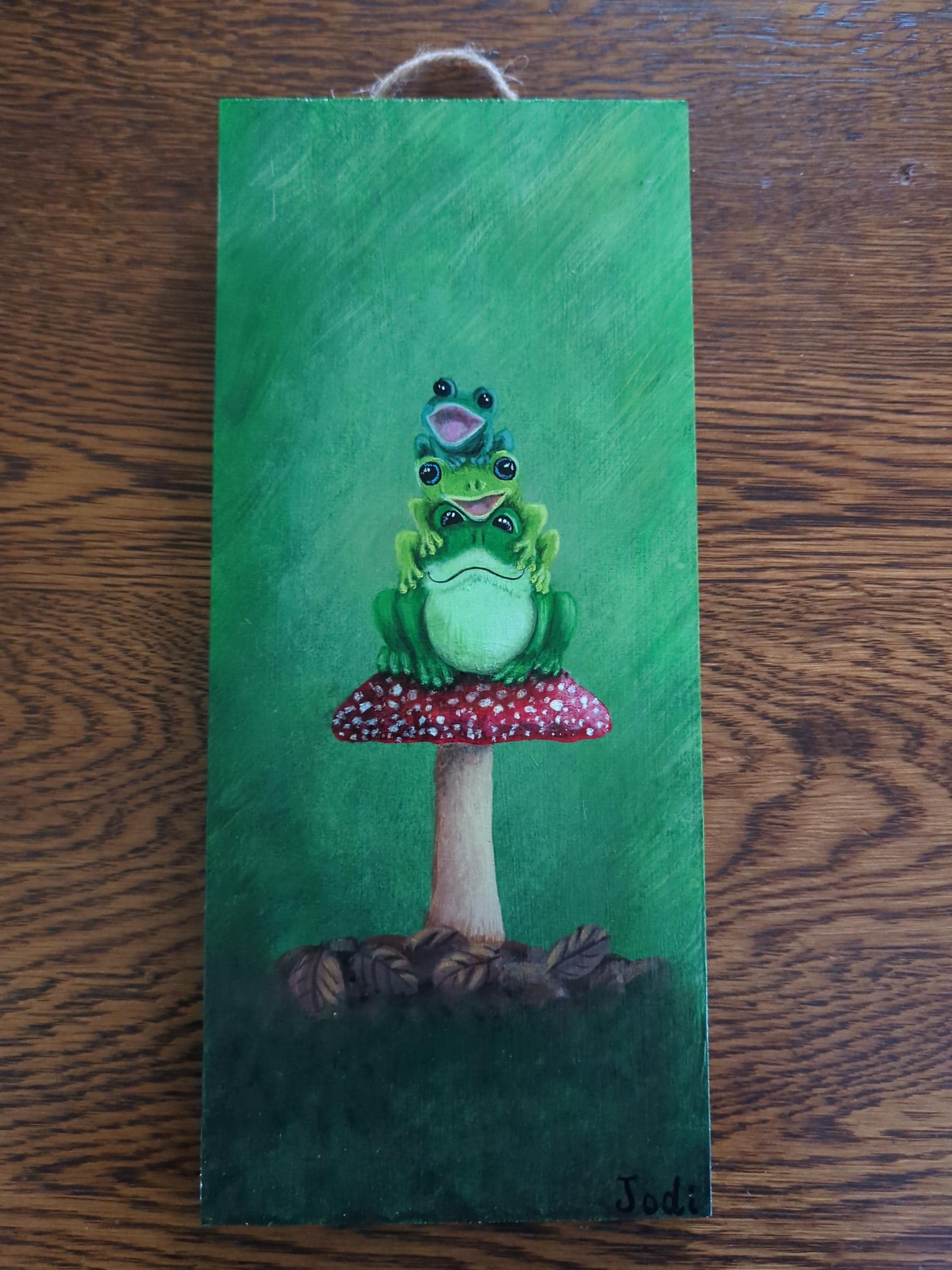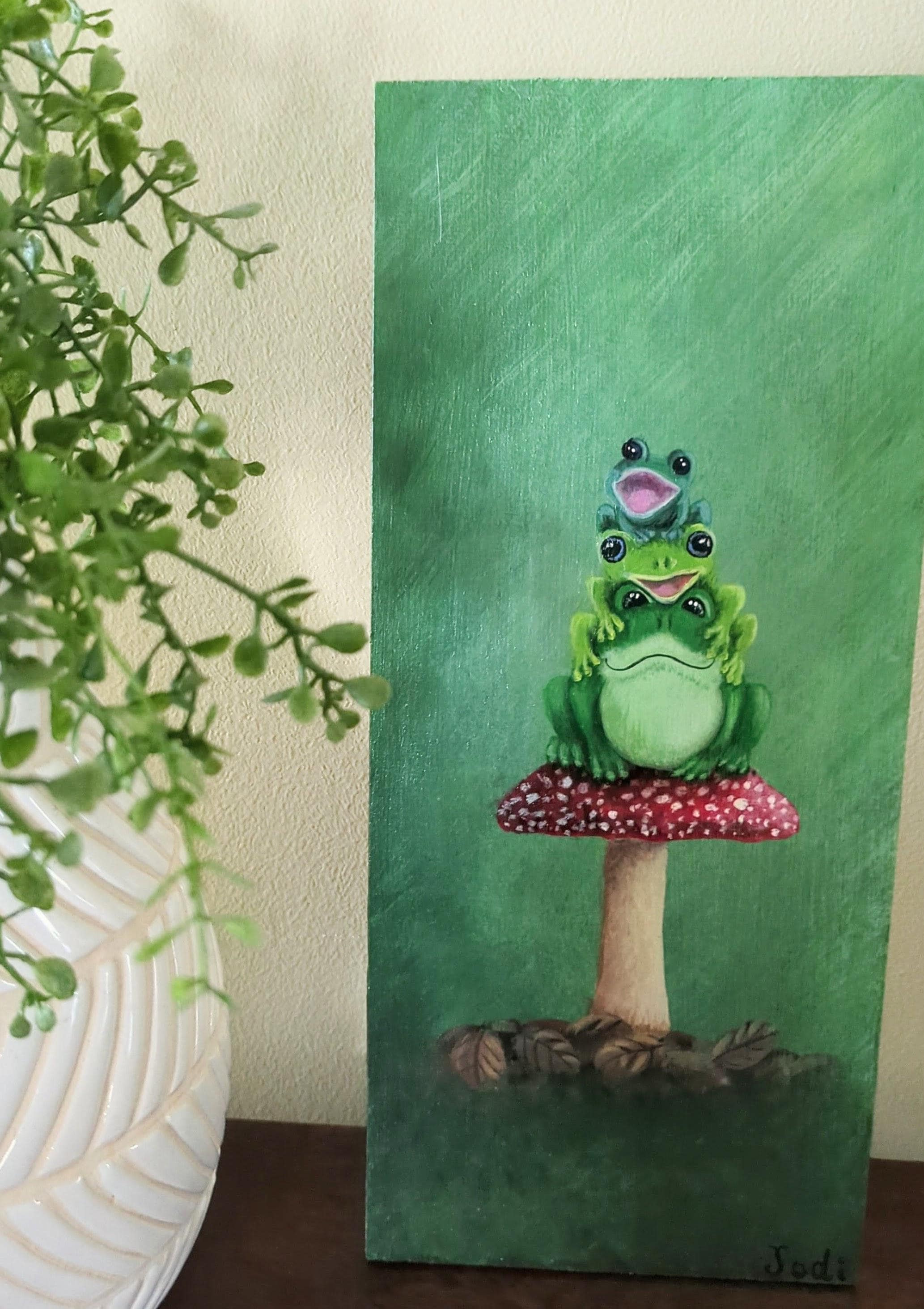 Original hand-painted frog artwork on wood — ready to hang.