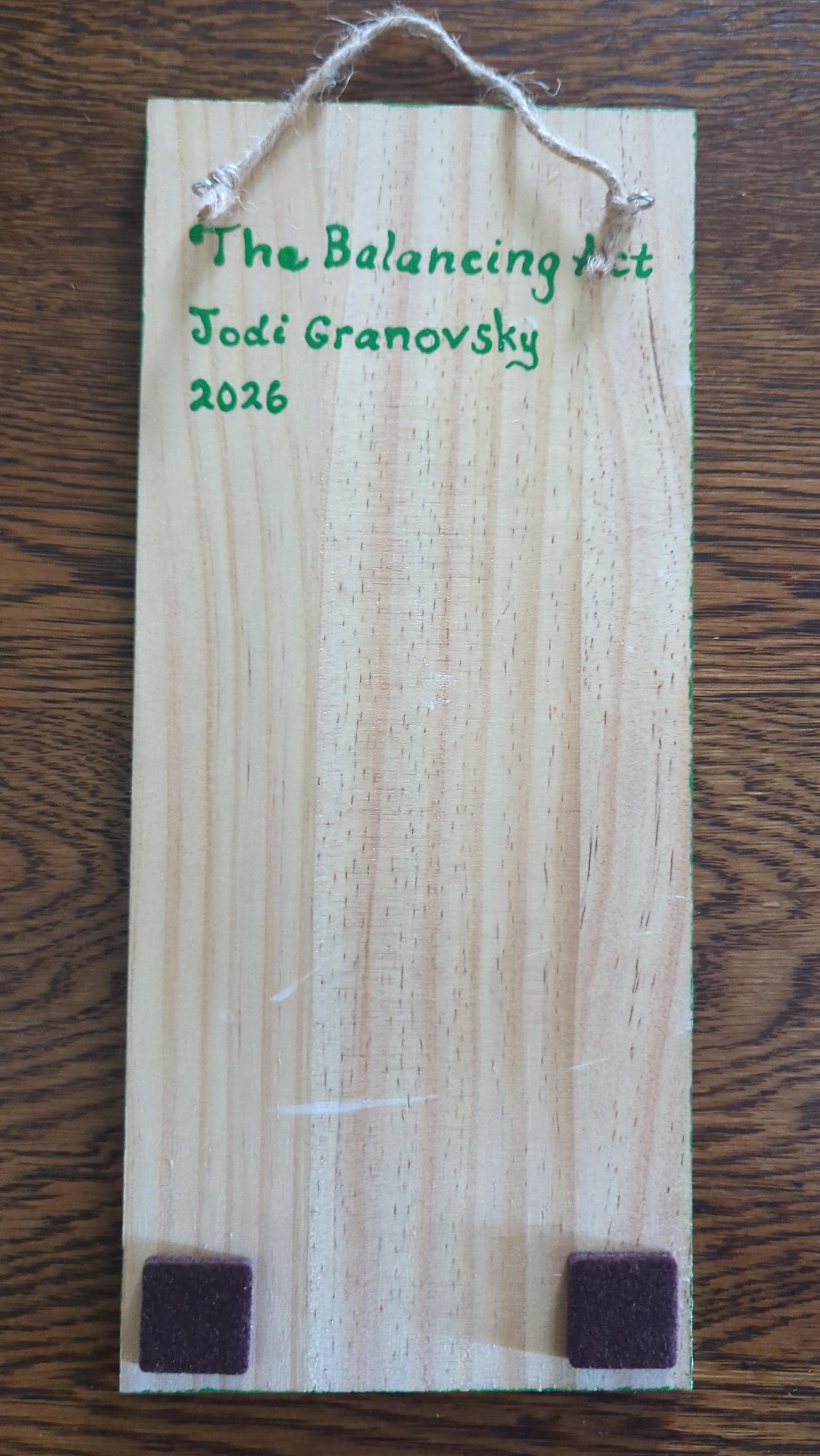 Painted freehand on natural wood, "The Balancing Act" captures a moment of playful balance as frogs stack and steady themselves in a quiet display of trust and connection. There’s a lightness to the scene, but also something deeper—each one depending on the other, finding stability together rather than alone.
