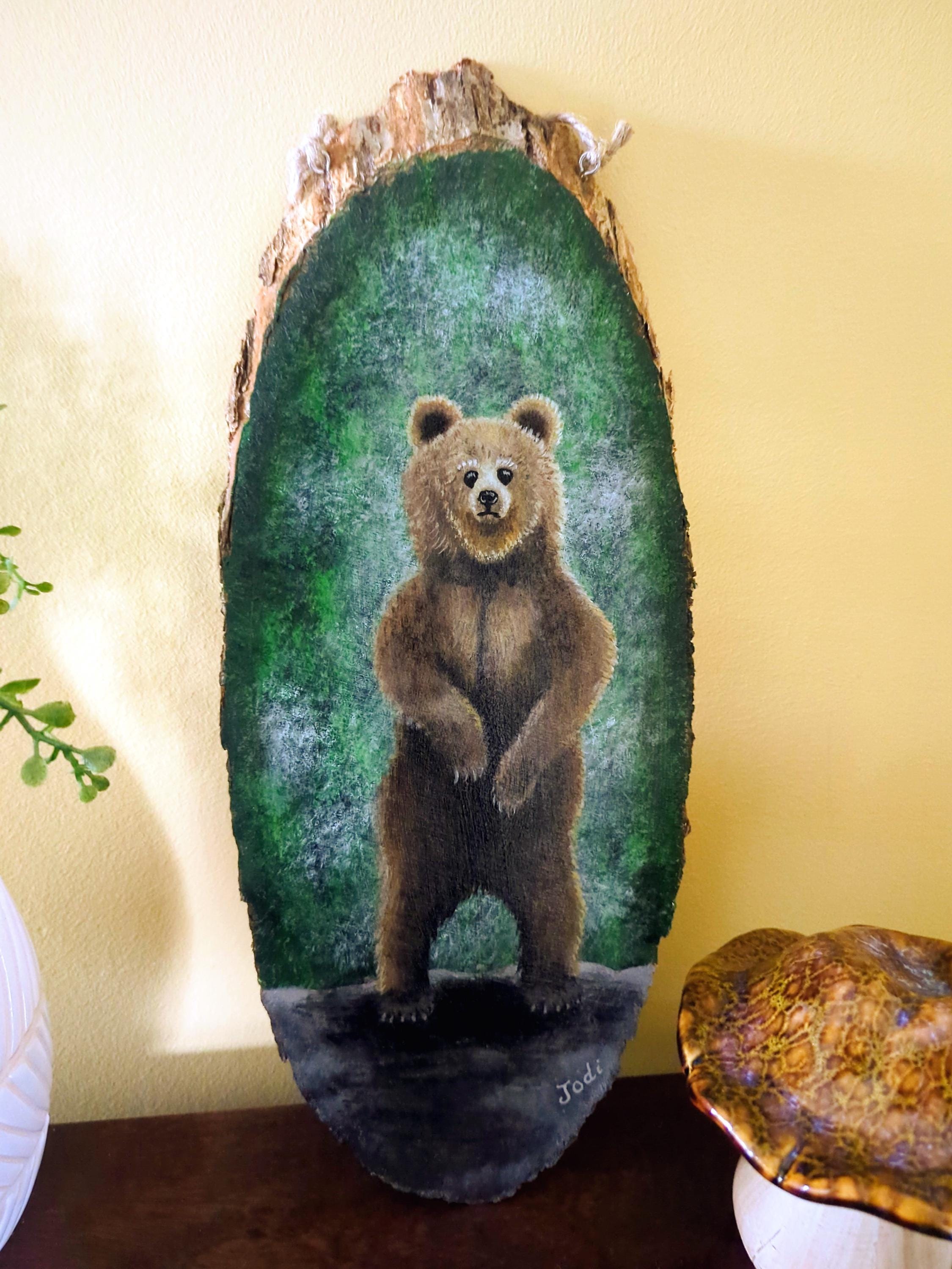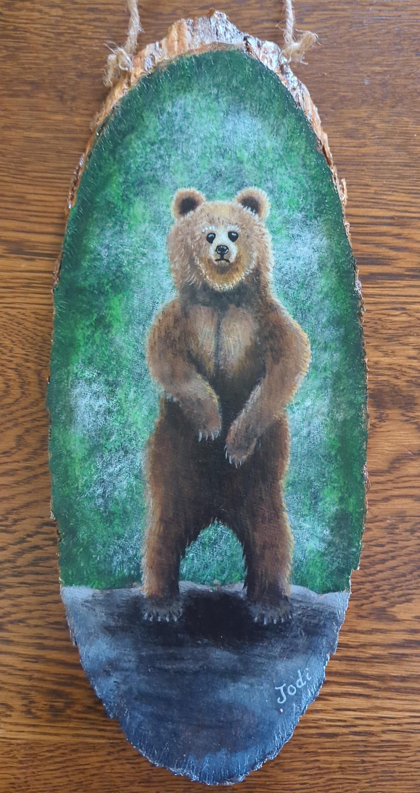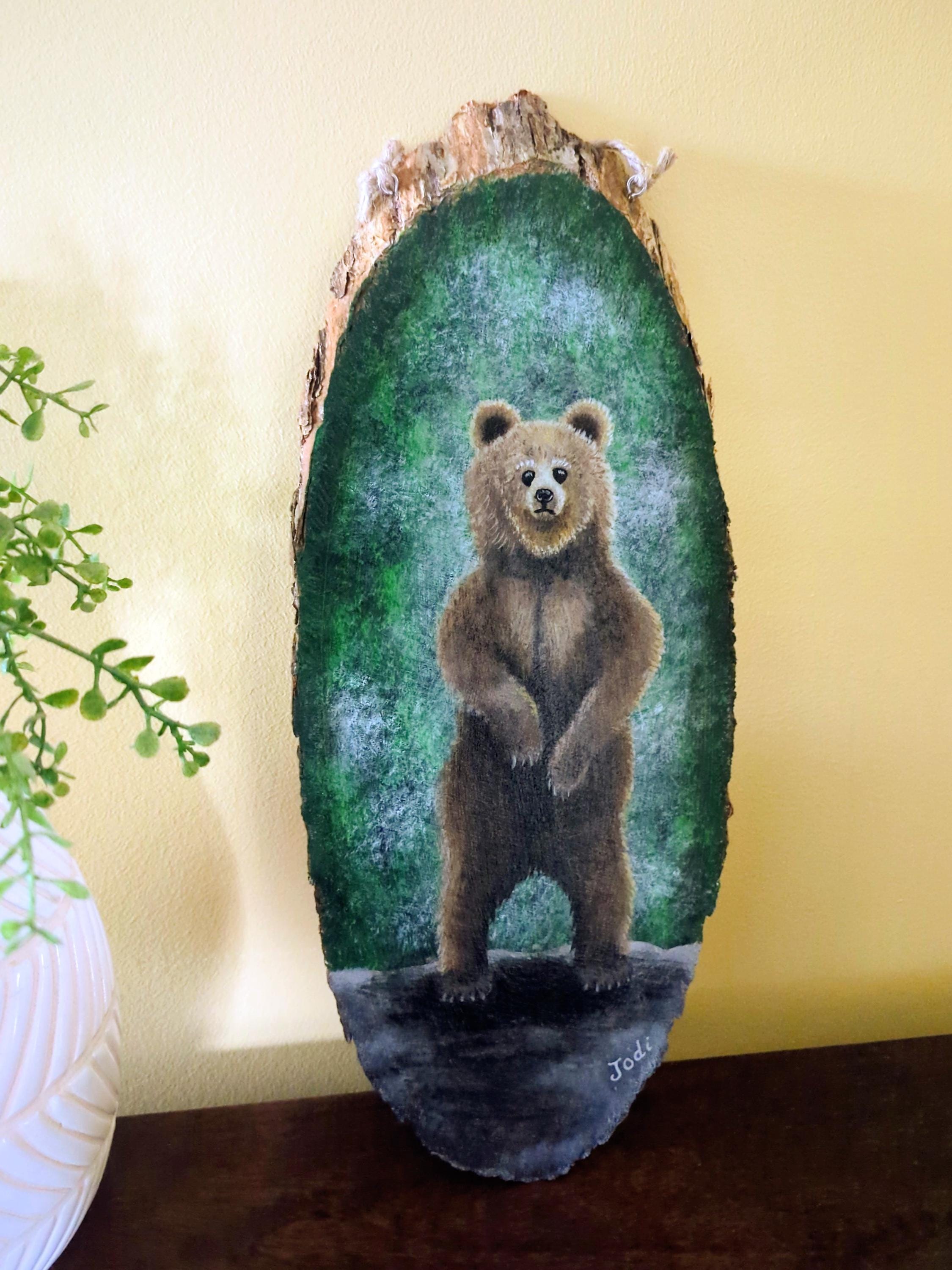 Original hand-painted bear artwork on wood — ready to hang.